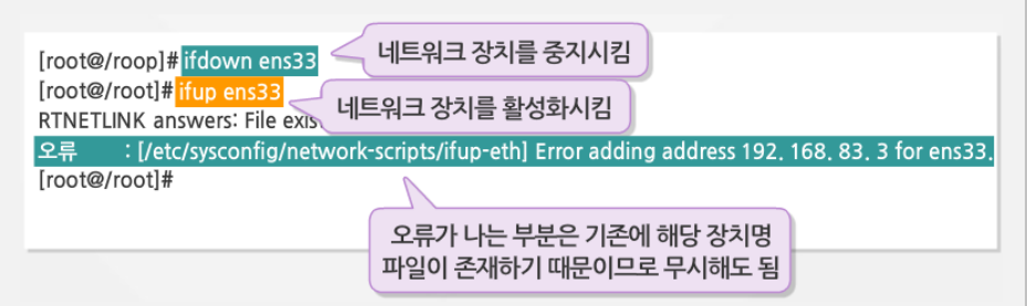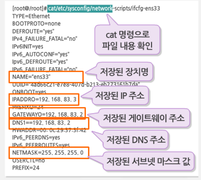 - - 장치명 ens33에 설정된 네트워크 정보 확인