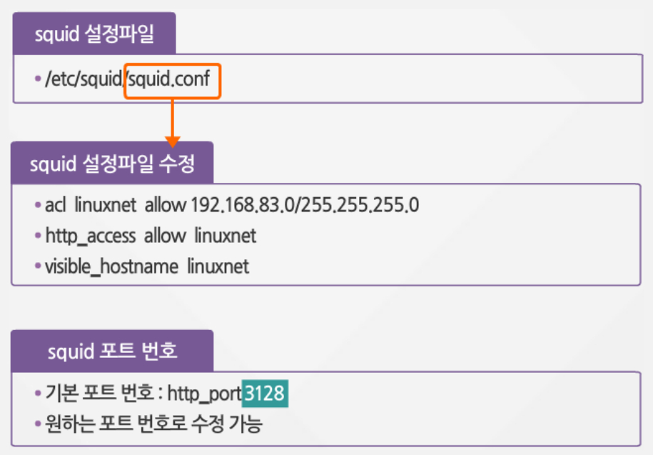 - 캐싱 기능이 뛰어난 squid 패키지를 사용한 프록시 서버 구축