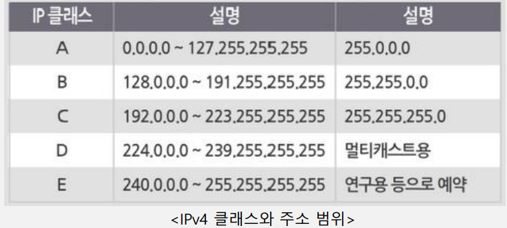 - IP 주소는 네트워크 주소와 호스트 주소로 나눌 수 있음.