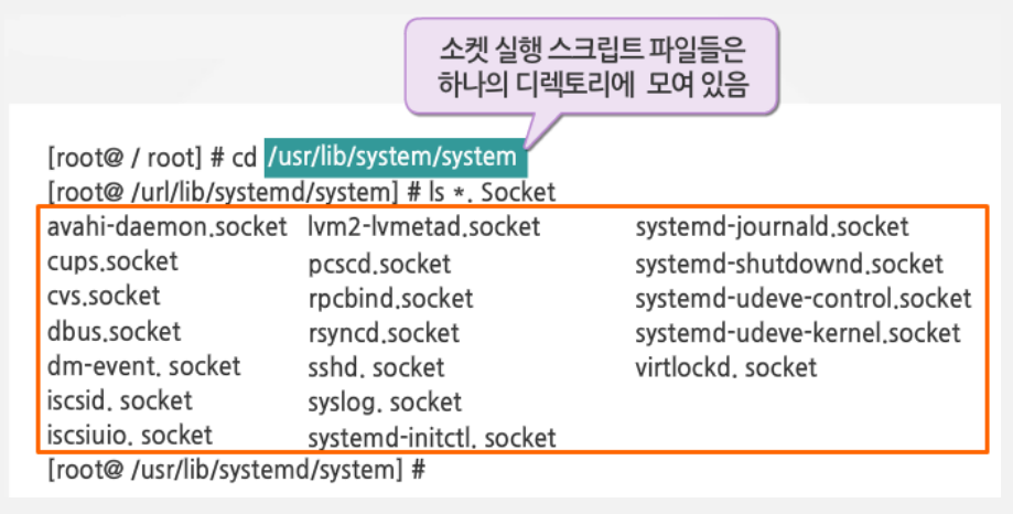 --> 소켓을 통해 서버의 자원을 절약할 수 있음 - 소켓 실행 스크립트 파일 위치: /user/lib/systemd/system 디렉토리에 존재