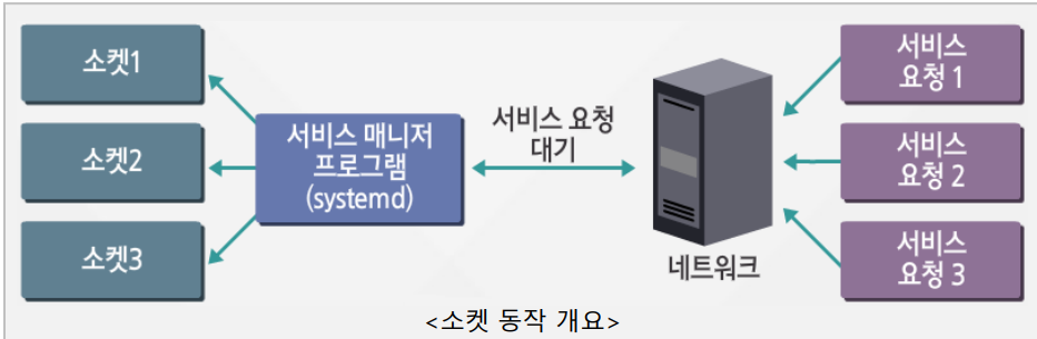- 서비스 매니저 프로그램인 systemd가 소켓 시작과 종료 실행