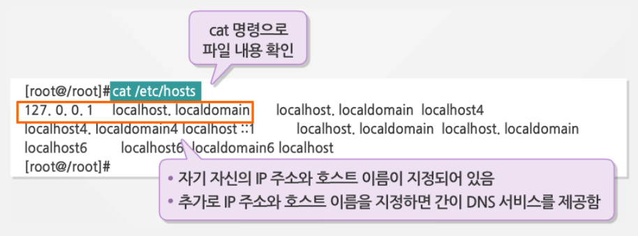 - 외부에 있는 DNS 서버에 서비스를 요청하기 전에 간이 DNS 파일을 먼저 확인함
