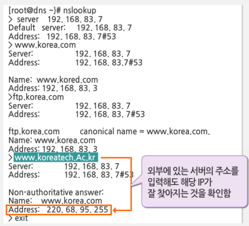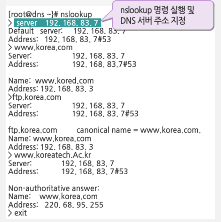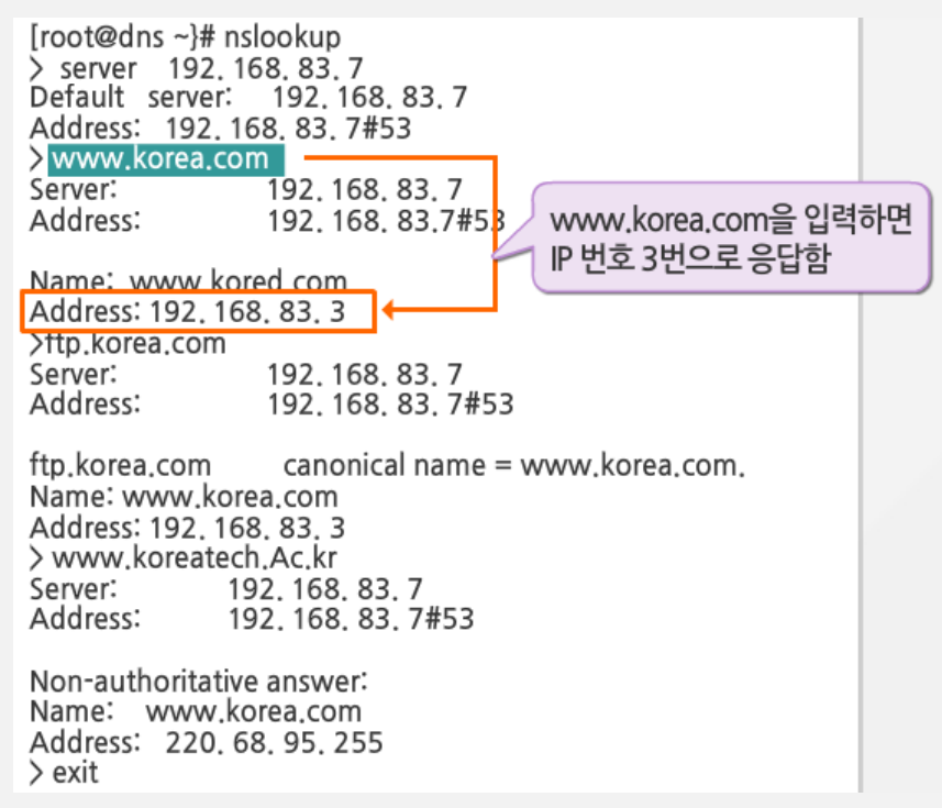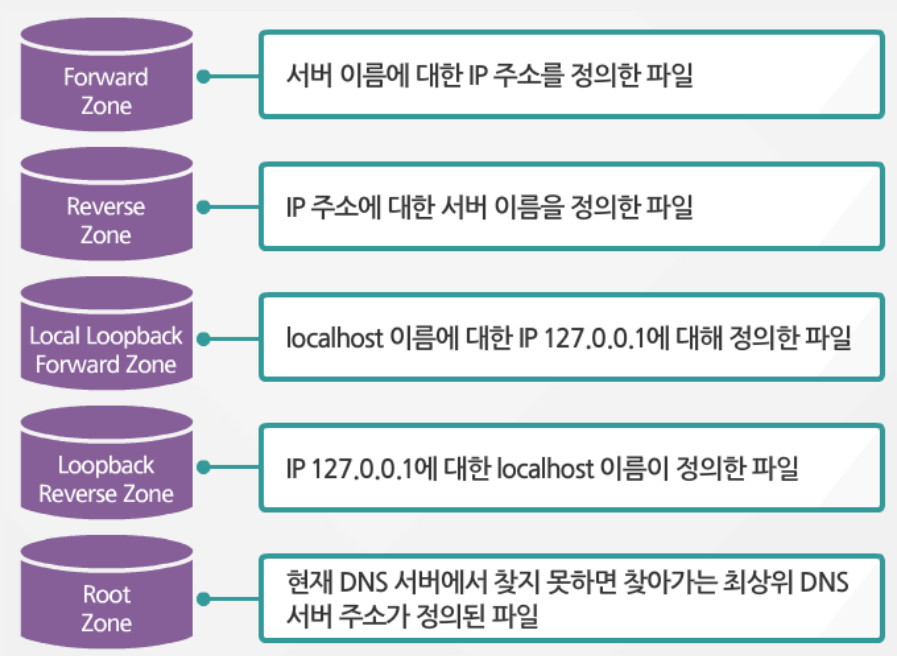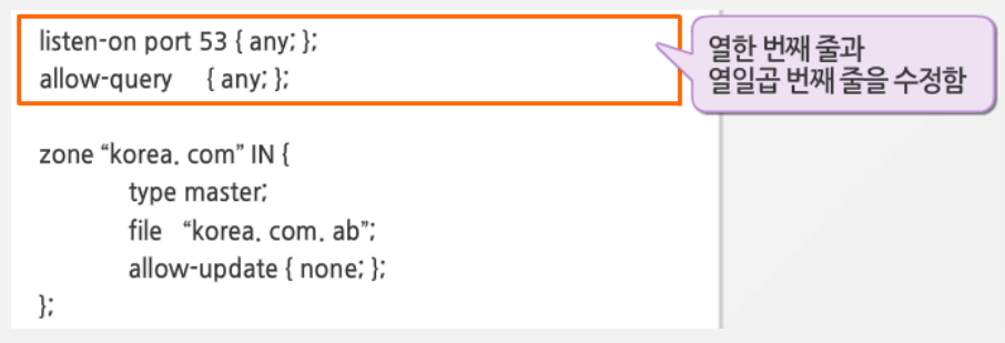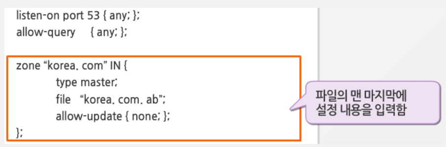 - /var/named/korea.com.db: 설정 파일