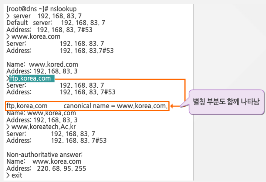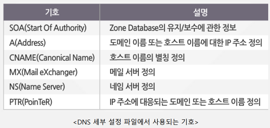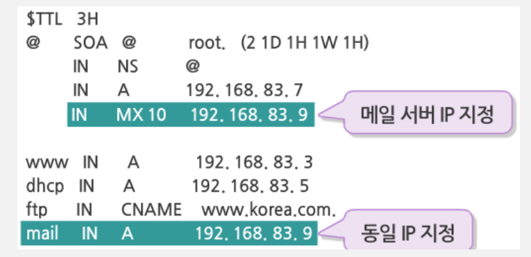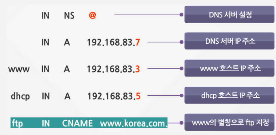 - /var/named/korea.com.db : 세부 내용 설정 파일