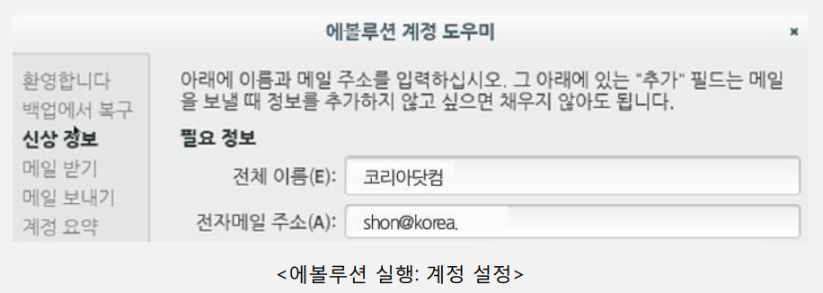 - 전체 이름과 전자메일 주소 입력