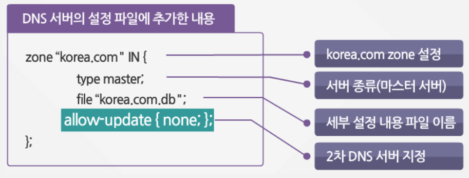 - DNS 서버의 설정 파일에 추가한 내용