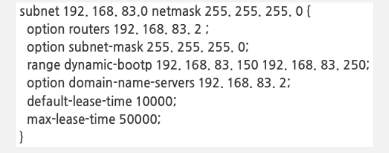 - 패키지명 : dhcpd