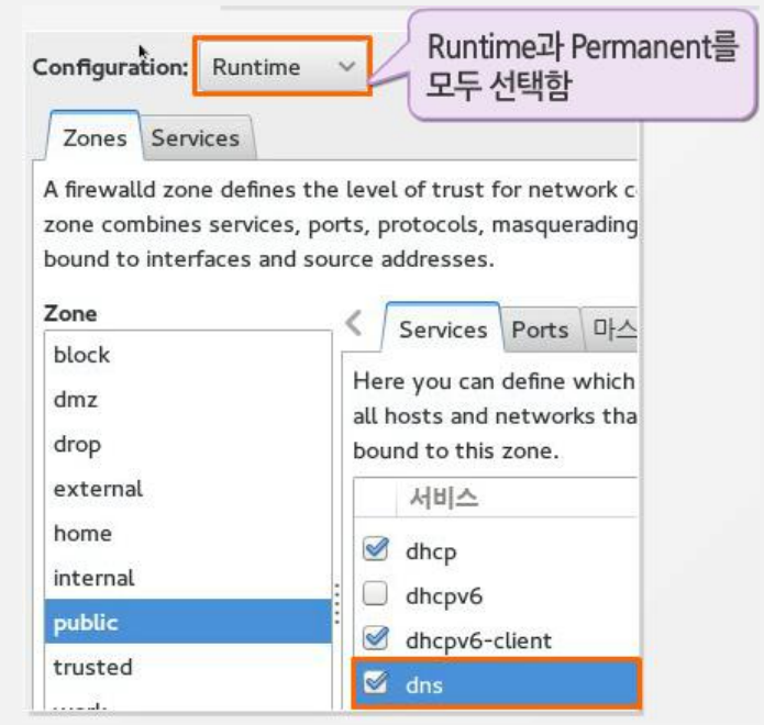 firewall-config : 방화벽 설정 프로그램 실행