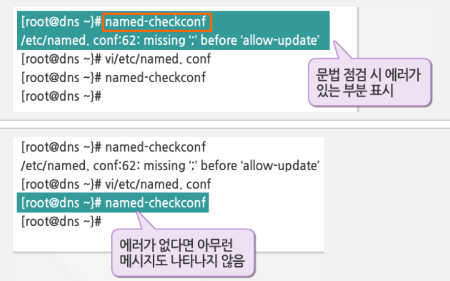 - named-checkconf : 문법 점검