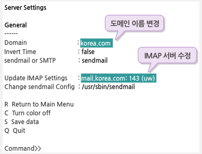 - 기존의 리눅스 서버와 혼동하지 않기 위해 메일 서버의 호스트 이름 변경!