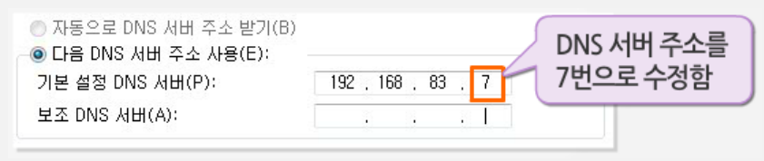 - DNS : 192.168.83.7번으로 수정 후 접속