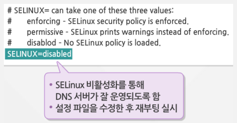 - SELinux 설정 파일 : /etc/sysconfig/selinux