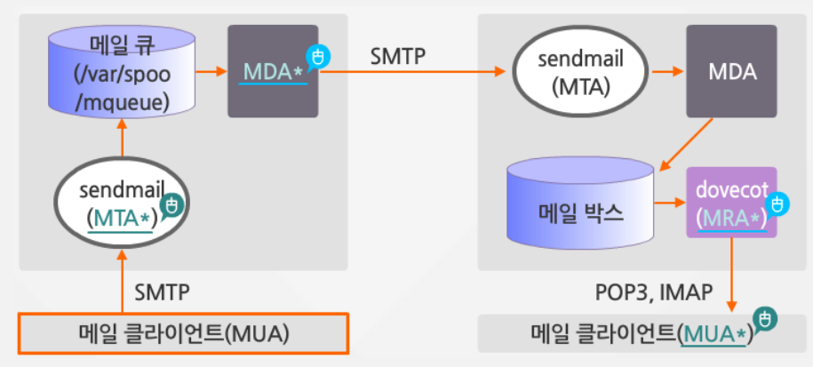 - 메일 서버 : sendmail 이 대표적임