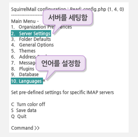 - /usr/share/squirrelmail/config/conf.pl : 추가 설정을 위한 명령