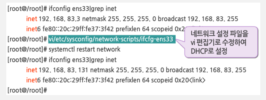 DHCP 클라이언트 설정(리눅스-파일 수정)