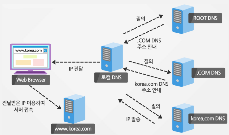 - 도메인별로 DNS 서버 존재