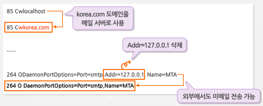 - sendmail 서버 설정 파일 수정