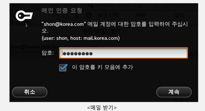 - [메일 받기]클릭 -> 사용자 암호 입력