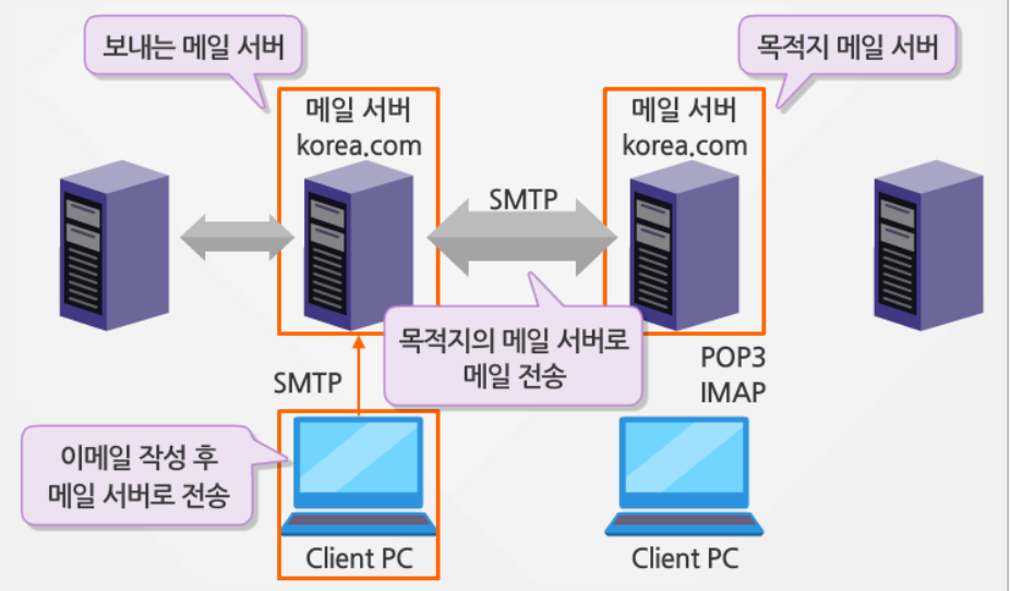 - 클라이언트의 이메일을 송신하거나 서버끼리 이메일을 주고 받을 때 사용하는 프로토콜