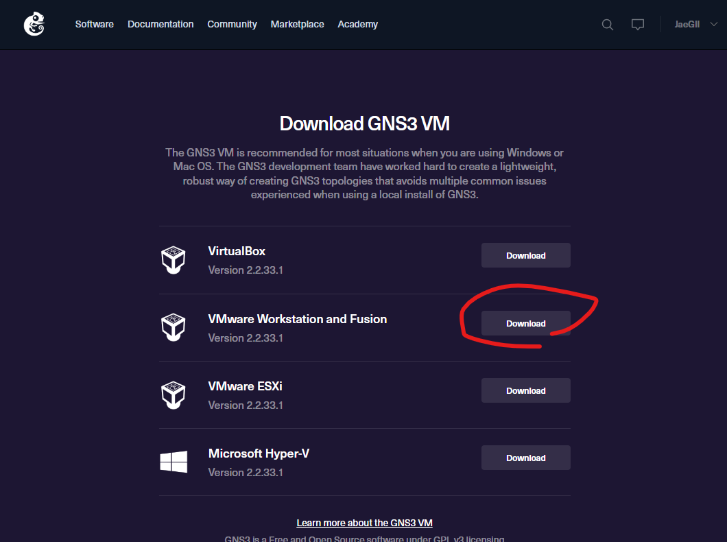 GNS VM.ova 다운로드.