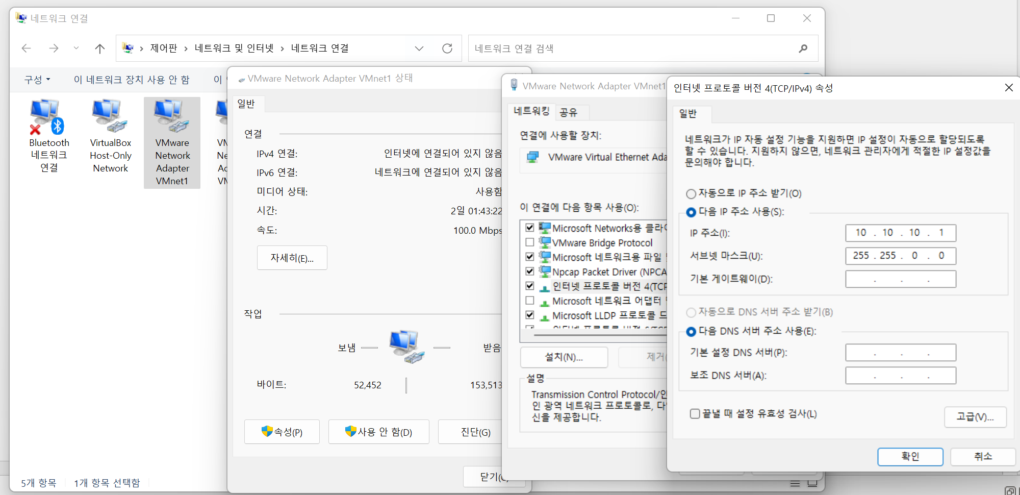 안에 IP주소랑 서브넷, 게이트웨이도 사진과 같이 수정