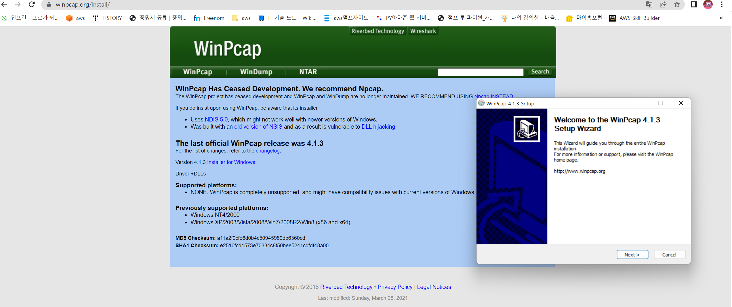 WinPcap부터 설치
