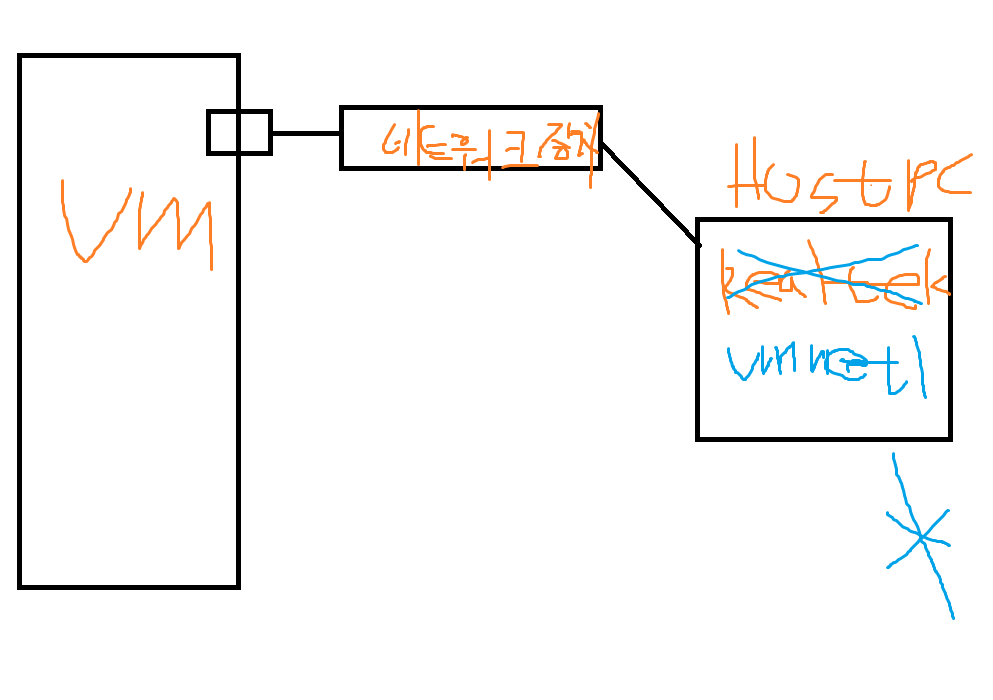 ※ 가상머신의 네트워크 어댑터 / 호스트 컴퓨터의 네트워크 어댑터 두가지는 어디에 연결 되있는가?