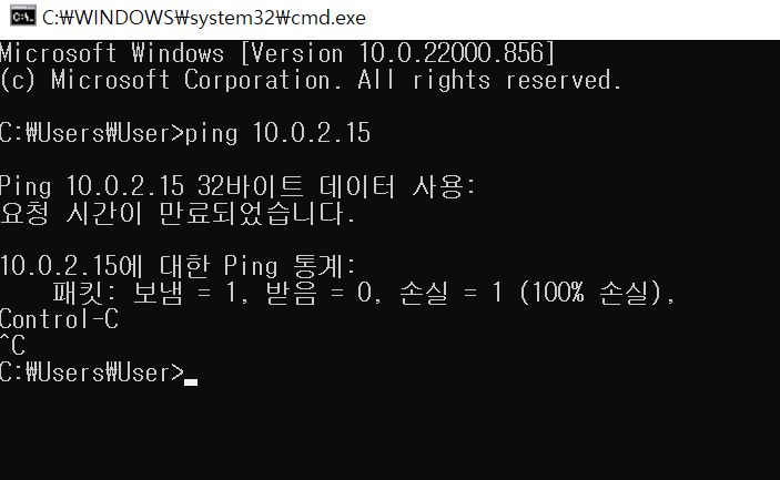 10.0.2.15로 ping을 해봤지만 응답없는것 확인.