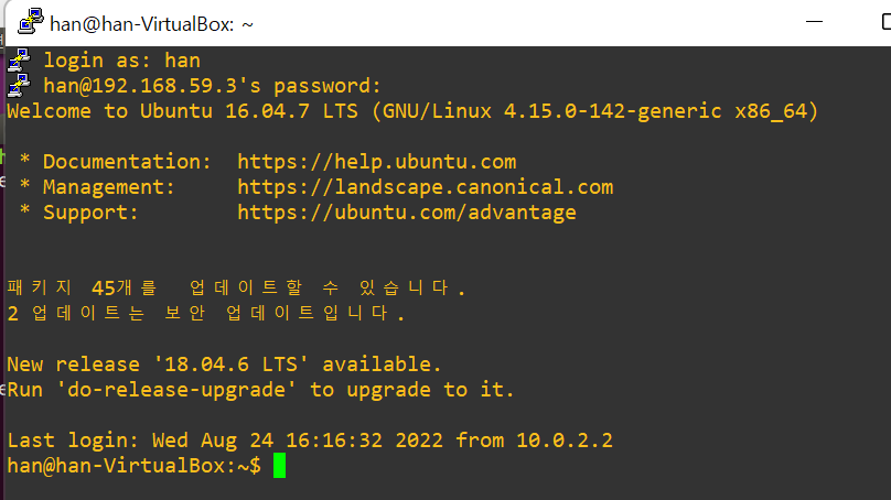 - putty에서 접속후 완료된것 확인