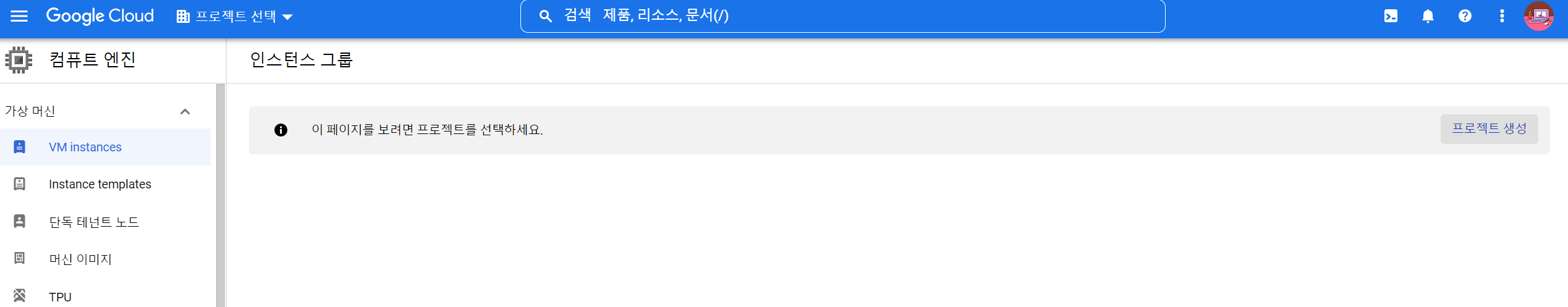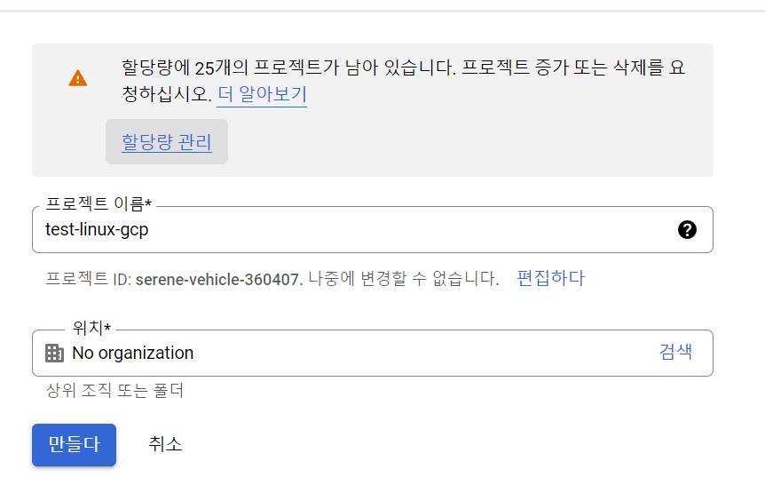 (GCP는 프로젝트를 생성하고 나서 작업들을 진행할 수 있음)