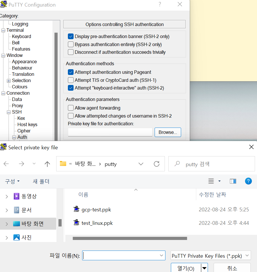 gcp_linux라는 이름으로 저장 한 후 Auth로 가서 key를 추가