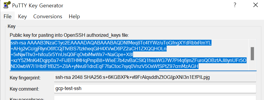 11. 사진에 Public key를 gcp 계정에 저장해야함