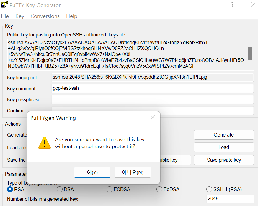 Puttygen을 켜서 key를 만들것임.