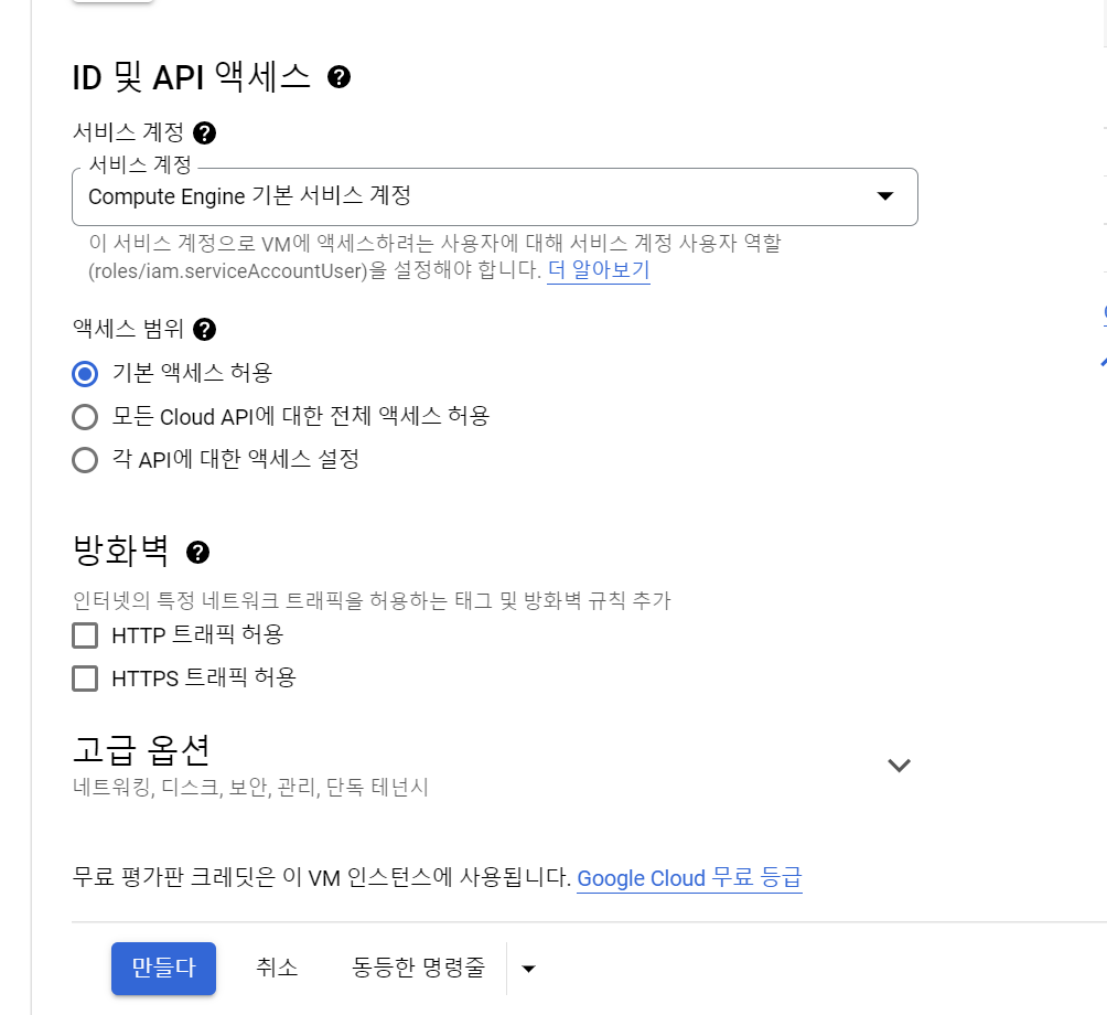 (GCP는 AWS와 달리 3개월 프리티어)
