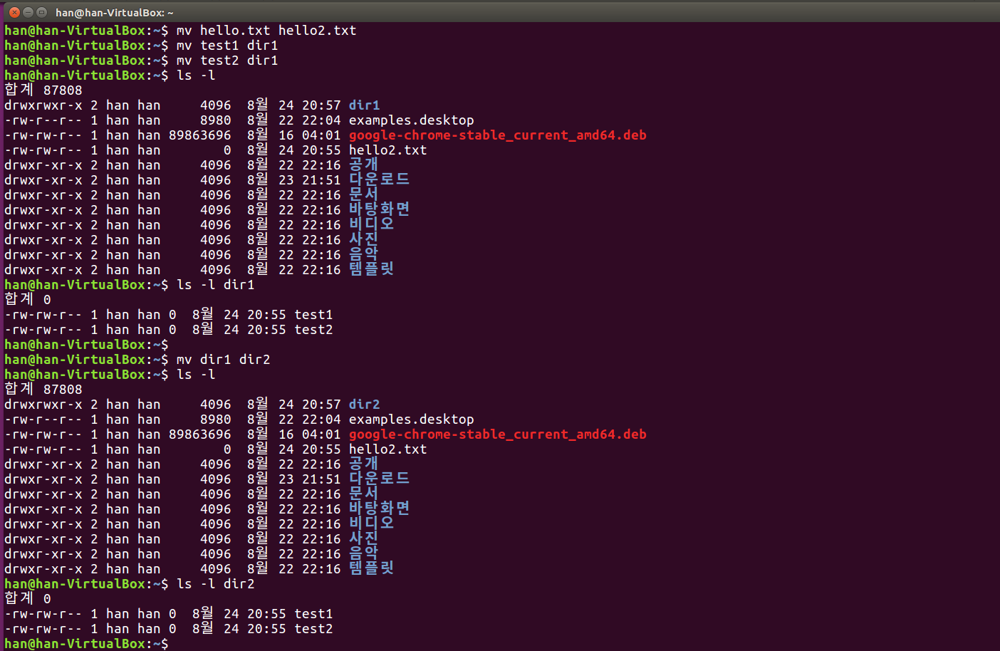 - cp test1 dir1 : 파일 디렉토리 안으로 복사