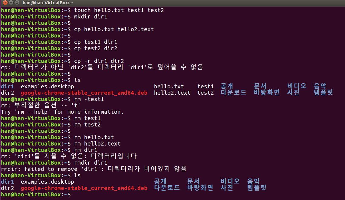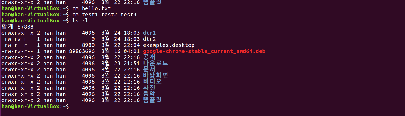 - rm -r dir1 (성공) = 사용자 주의, 모두다 지워버림