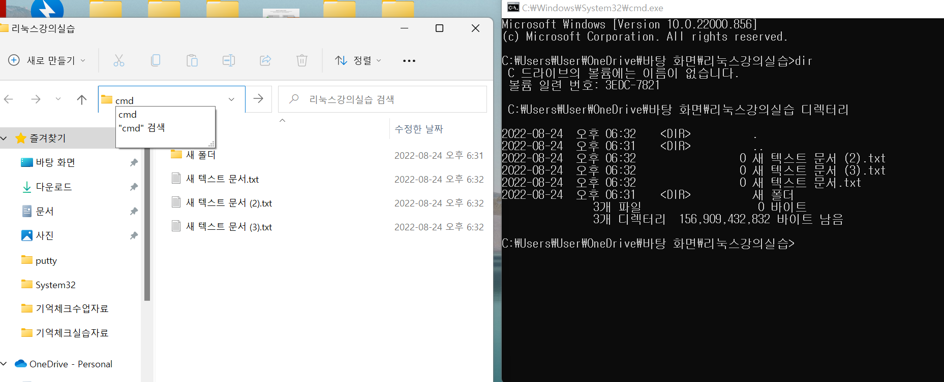 move를 실습하기 위해서 다시 파일/디렉터리 만들기