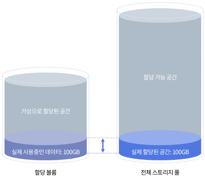 3. 한줄요약 사전에 스토리지 용량을 할당하지 않고, 데이터 작성 시 응용 프로그램에 적시된 용량을 바탕으로 가상화 기술을 통해 동적으로 스토리지를 확장하는 프로비저닝 |