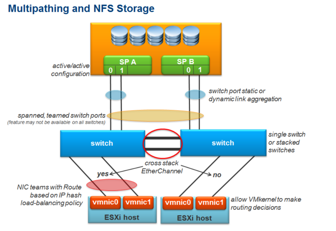 | 1. ESXi managed multipathing | 1. Native Multipathing and session trunking |