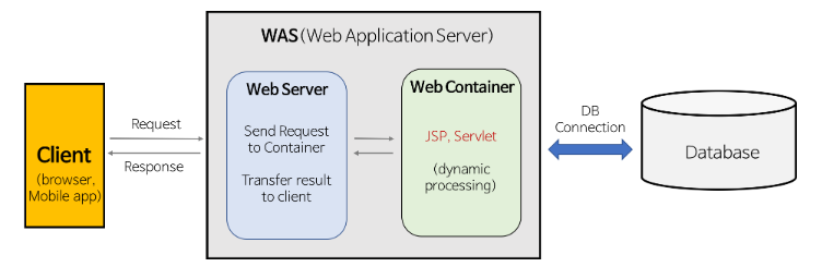 - DB 조회 혹은 로직 처리가 요구되는 동적 콘텐츠를 제공하기 위해 만들어진 Web Application Server