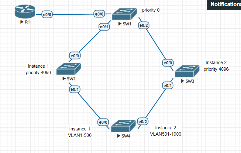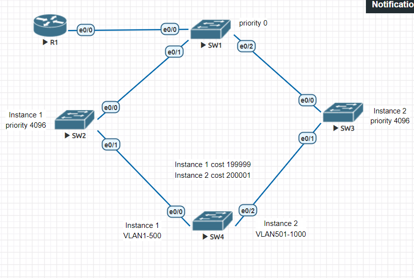 SW1(config)#spanning-tree mst 1 priority 0