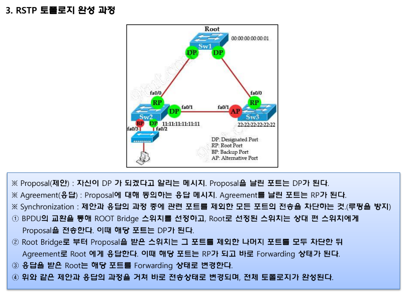 STP의 단점인 컨버전스 시간을 획기적으로 단축시켜주는 프로토콜입니다.