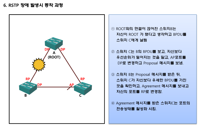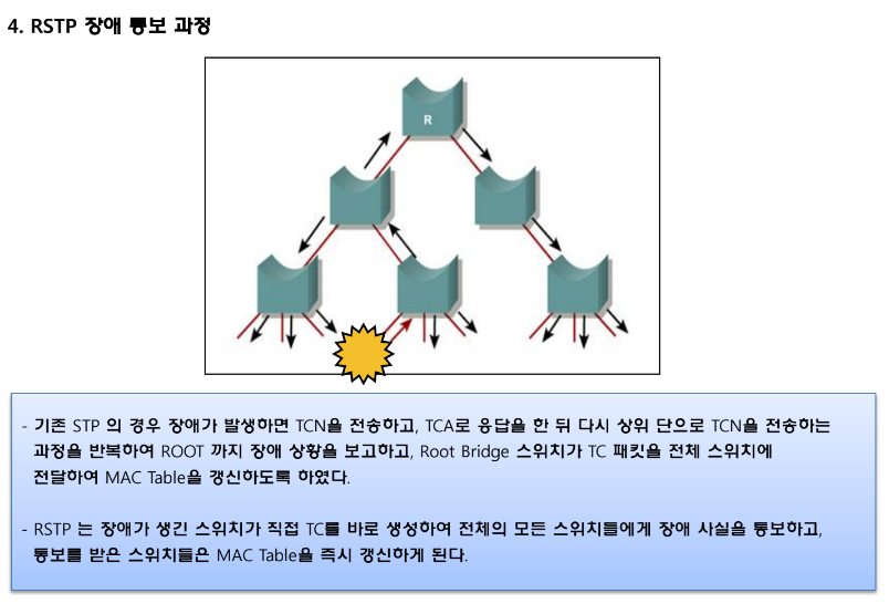 ** RSTP 자체는 STP가 토폴로지 변화시 사용하는 TCN BPDU를 사용하지 않습니다.