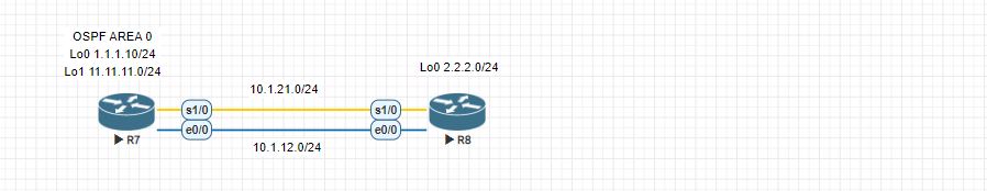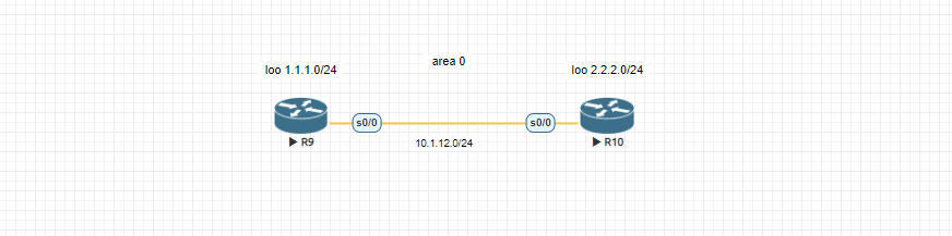 구성도와 같이 R1, R2 사이에 IP를 설정하고, OSPF Area0을 설정하시오.