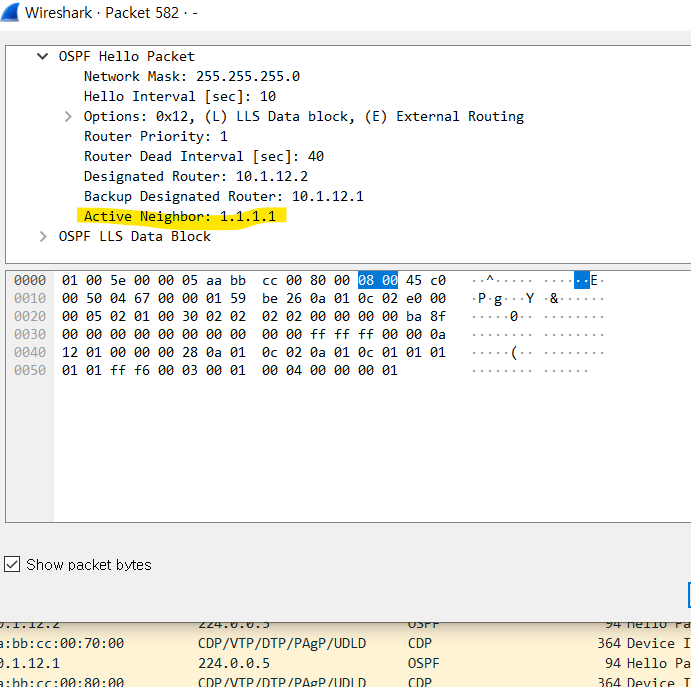 다시 변경을 하니 OSPF가 바로 맺어지면서 DBD, LSR, LSU, LSAck Packet들이 교환되는걸 확인할 수 있다.