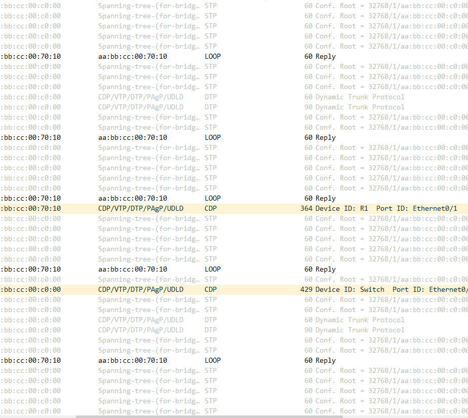 R1,SW1간에 Packet Capture를 해보면, Hello message가 보이지 않는 것을 확인 할 수 있습니다.