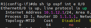 E0/0은 OSPF Cost가 10 (10^8/10Mbps)