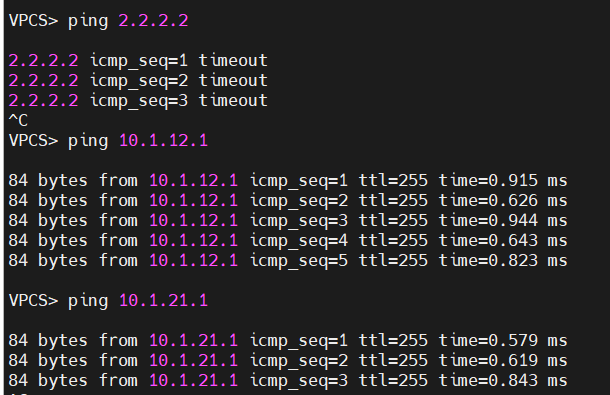 만약 R1에서 E0/1(1.1.1.0/24)를 OSPF로 광고하지 않는 경우, PC1에서는 PC>2.2.2.2로 통신이 되지 않는 것을 확인하세요.