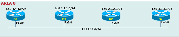구성도와 같이 AREA0를 구성하세요. (R1의 E0/1은 OSPF에 포함하지 마세요.)
