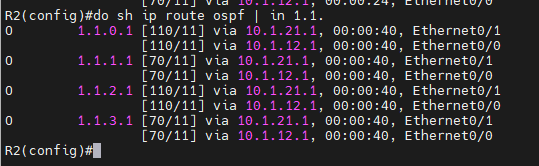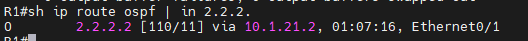 확인은 sh ip route ospf | in 2.2.2.로 확인하면 된다.